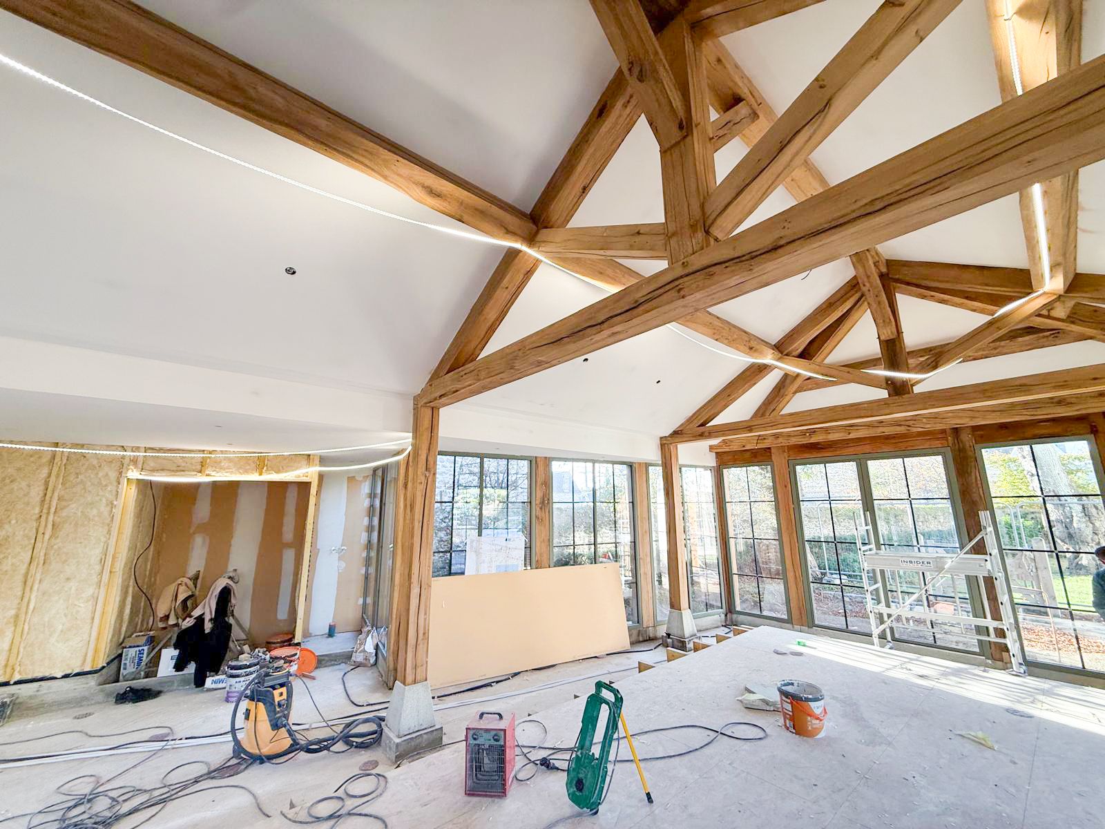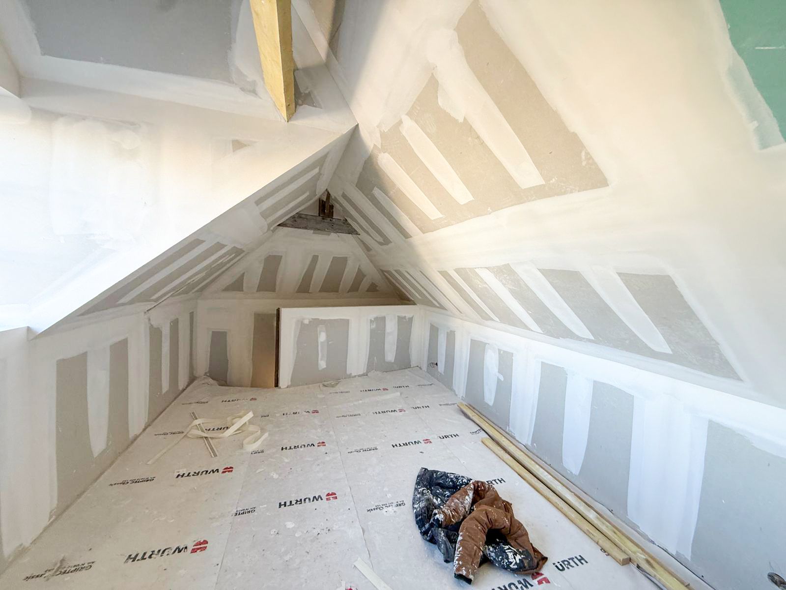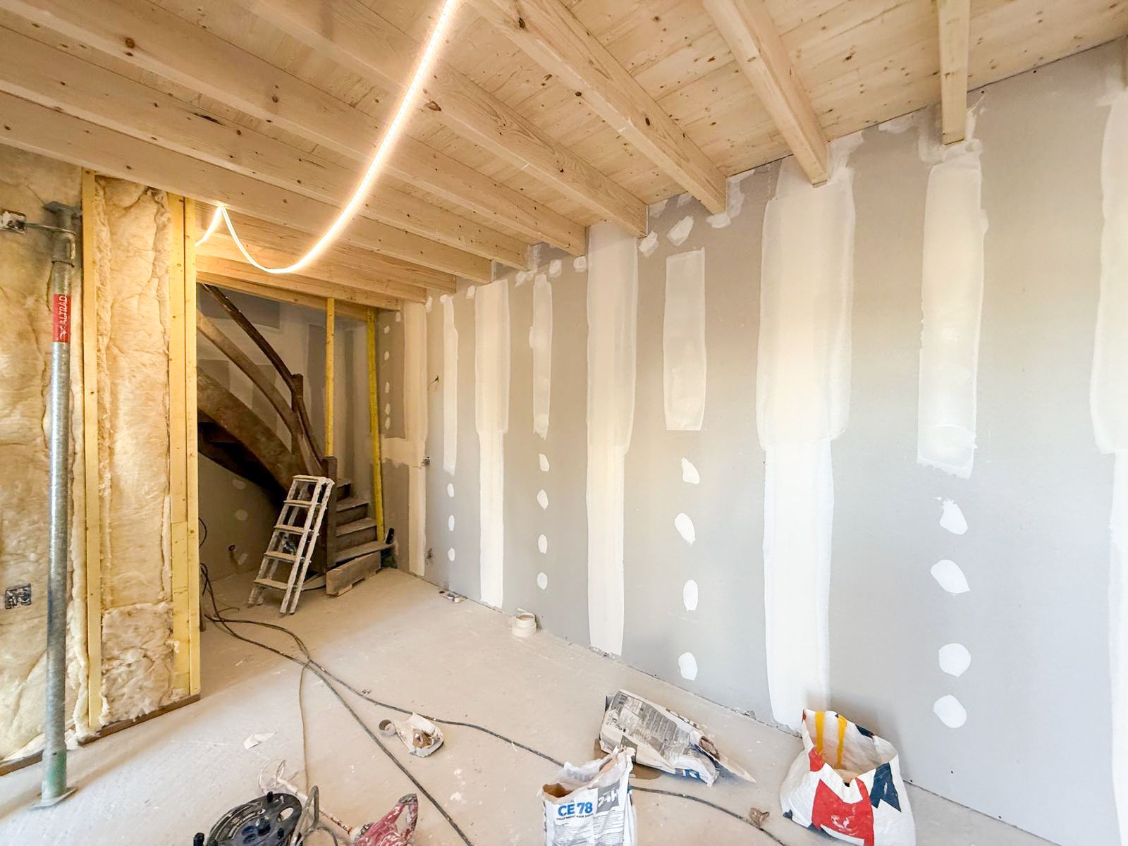 La partie rénovation a, quant à elle, été menée de façon plus classique, avec l’utilisation de laine minérale et du parement en Ba13 standard.
