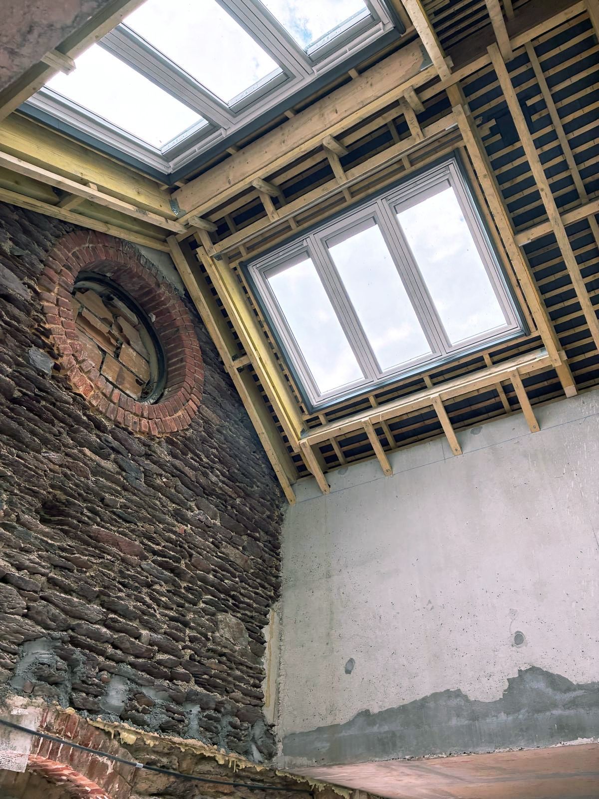 • Le traitement des combles par plafond technique avec membranes d’étanchéité à l’air, assurant une enveloppe parfaitement maîtrisée et conforme aux standards de la rénovation énergétique performante.